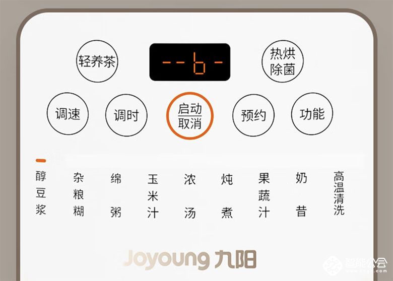 首先,我们来看颜值。一抹简约的沙丘灰为沉闷的厨房带来一丝活力,令人心情愉悦。九阳的LOGO印在机体菜单的正下方,上面是一目了然的菜单。搭配1500ml容量的冷热双打杯满足不同家庭需求。