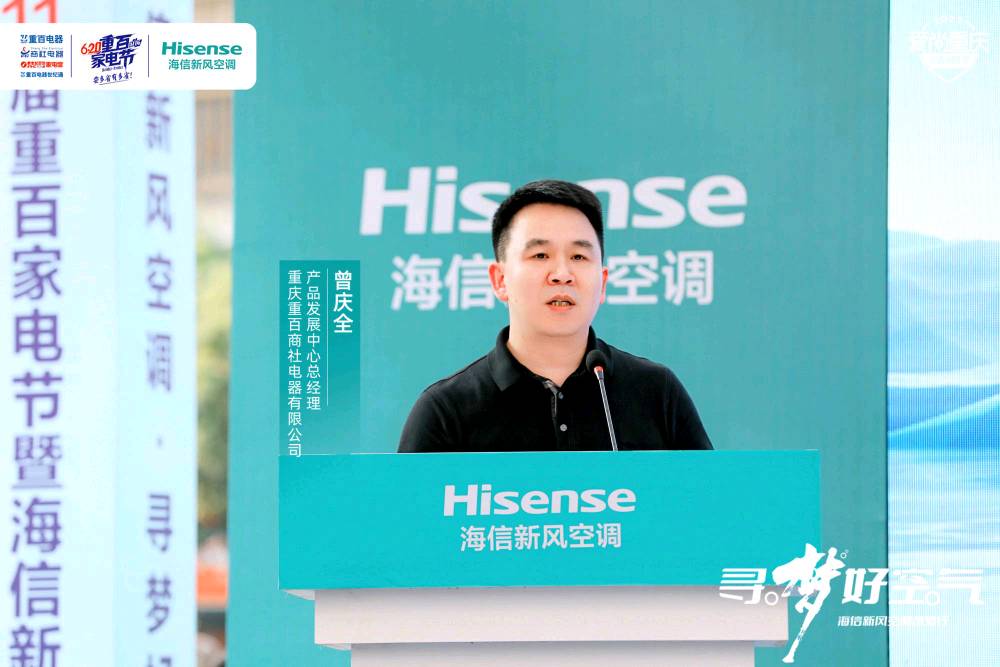 “科技的进步让生活有了品质的享受,新风空调的出现让呼吸有了极致纯净的享受”,重庆重百商社电器有限公司产品发展中心总经理曾庆全在现场为用户进行深度对话,解读海信新风空调产品理念和所蕴含的创新科技。重庆因境内川岳纵横、山高谷深而被称为“山城”,复杂多样的地貌造就当地多变的空气形态,同时也成为联系起重百电器与海信空调的重要纽带。