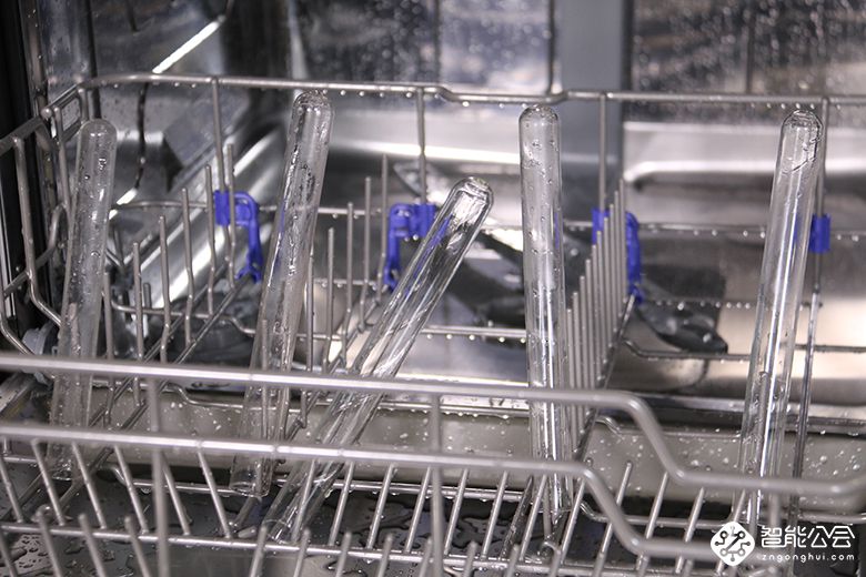 放入到洗碗机内,开启即时洗模式,经过87分钟的洗涤之后,拿出油彩试管和燕麦碗,我们可以看到清洗的十分洁净:试管内壁的油彩也被完全清洗干净、顽固的燕麦污渍也被完全冲刷掉了。
