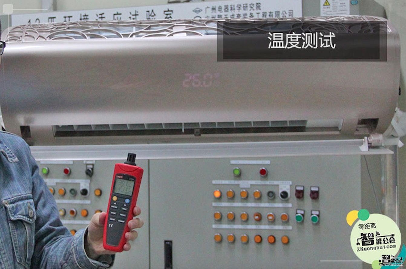 我们使用专业的温湿度仪测得室温29℃的房间,然后设置最大档位调至26℃,大概半小时后测得室内各个角落的温度均为26℃,降温效果优秀。
