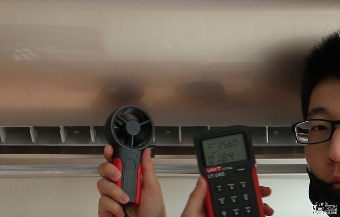 开启高中低三个档位分别测试风速,低档位1.67m/s,中档位2.14m/s,高档位3.01m/s,而且科龙空调LV的出风口风速均匀,给用户带来舒适的送风体验,强力的风速渗透家中每一个角落。
