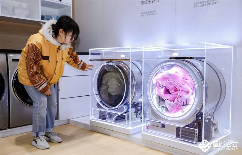 【智能公会 现场报道】3月14日,在上海召开的AWE家电博览会上,在海尔洗护展区现场,海尔热泵干衣机和传统干衣机进行了一次现场PK。将两件完全相同的床上四件套分别放进海尔热泵干衣机和传统干衣机里面,参观者可透过透明外壳直接观看烘干状况。烘干30分钟后,海尔干衣机里的被罩被抖散,没有打结现象,而传统干衣机里的被罩则成为一团。烘干效果,高下立判。