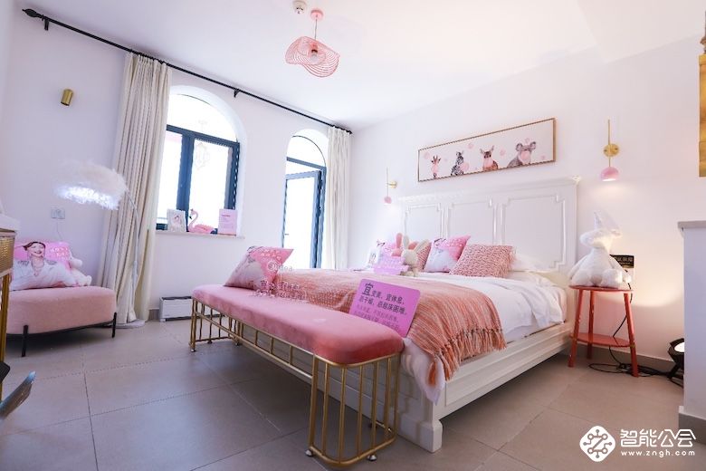 到了烈儿宝贝的卧室,调性却完全不同。粉嫩的搭配配合烈儿宝贝甜美的长相,打造了任何一个女生都渴望的公主房间。美的踢脚线摆在懒人沙发旁,落地羽毛灯被轻轻吹动,如梦似幻。