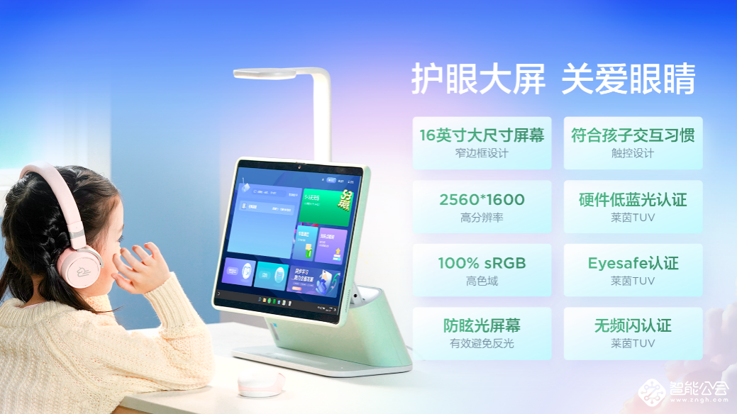 机身采用环保材质,孩子使用更安心。采用窄边框设计的16英寸大尺寸触控屏幕,视野更开阔也更符合孩子的交互习惯。同时,屏幕通过了德国莱茵TUV低蓝光无频闪双重认证有效减少对孩子视力的伤害。