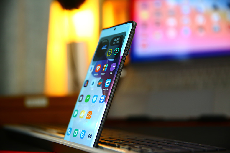回到机身的正面,这块6.7英寸FHD+ 144Hz高刷微曲屏还是非常惊艳的,它支持10bit色深、HDR10+、100% DCI-P3,不管我们是追剧还是玩游戏,这块屏幕都能很好的还原画面。