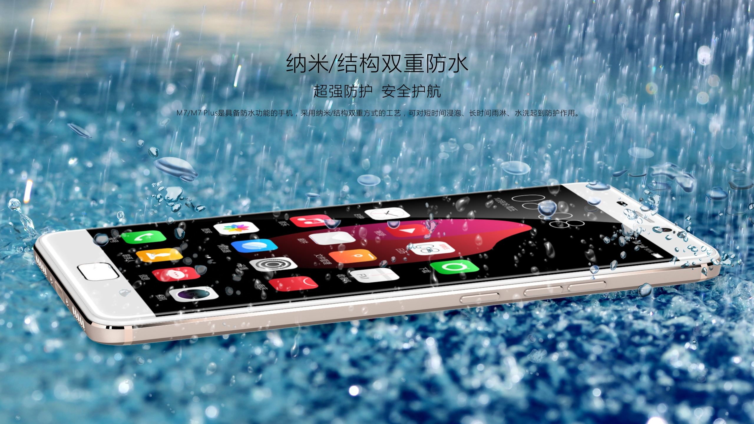 再来看看这次发布的两款产品M7和M7 Plus。首先其网站全黑的背景很容易让人联想到主打亮黑色的iPhone 7系列。背部的“镜头压天线带”的设计和图片上的手机摆位则让人直接想到了OPPO R9。