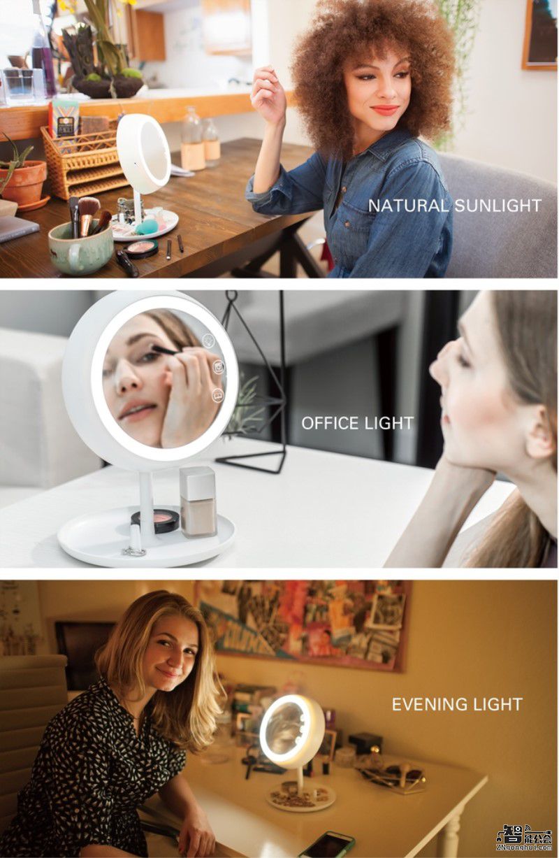 化妆镜对于每一个爱美的女人来说都是日常必备品,普通的化妆镜也很常见。但是您是否能想象到一个集镜子、环形灯、台灯以及储物盘于一体的化妆镜会是什么样子的?