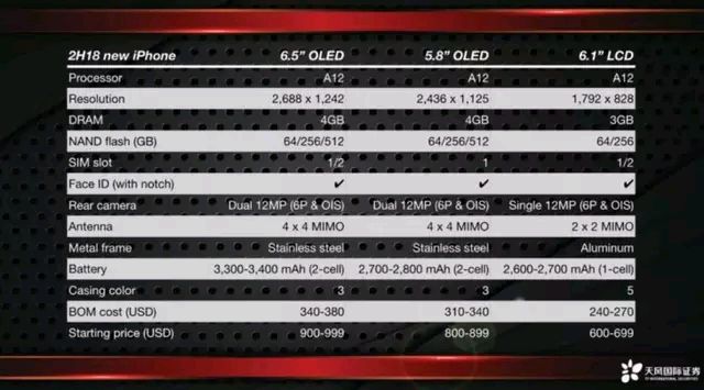 随着9月12日苹果秋季新品发布会的一天天临近,关于新iPhone的爆料信息也逐渐多了起来。我们现在已经知道,苹果将会带来三款新iPhone,按照屏幕尺寸可以分为5.8吋、6.1吋和6.5吋三个版本。其中6.1吋版将采用LCD屏,作为廉价款出现。