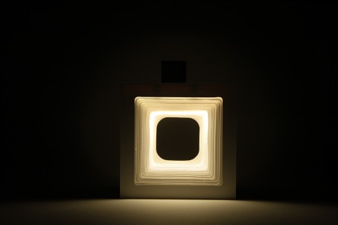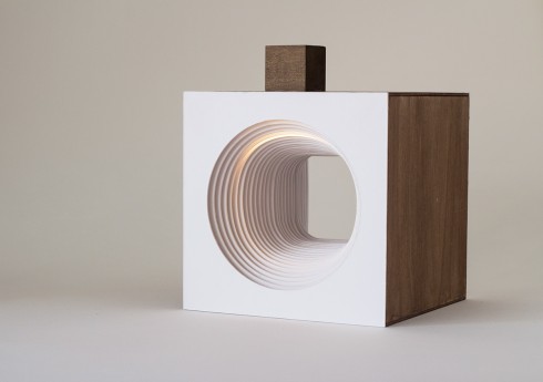 来自设计师Mattia Antonetti等人的创意,这款台灯是光的“虫洞”——方块结构的外壳中间,是一张张外方内圆的纸板,于是,当我们将光源放在台灯顶部,光就能从“虫洞”上方投射进去,而当你前后移动光源,这光便能在“虫洞”中流动起来~(同时,这种前后移动,也能让光从明变暗)
