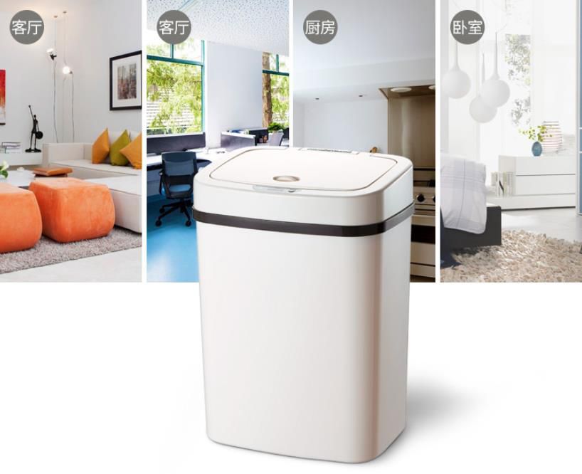 当收靠近感应区附近时盖子会自动打开,扔完垃圾后5秒左右盖子会自动的关闭,干净卫生。