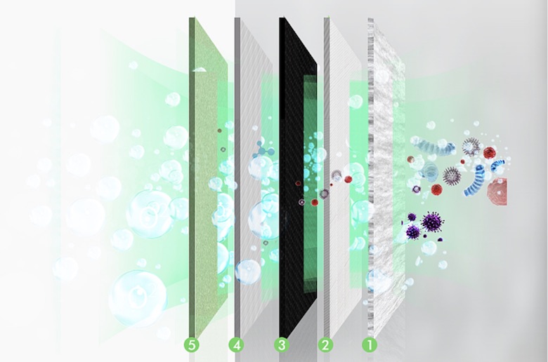 先进的密封净化系统,去除小至PM0.1颗粒物,并且不会将脏空气泄漏回房间;