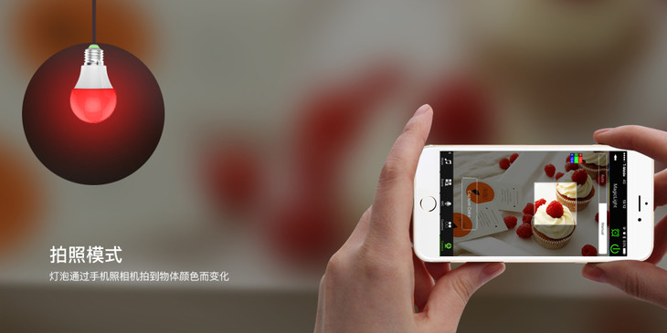 或者,借助手机麦克风,灯泡根据麦克风接收的信息也能改变灯光。