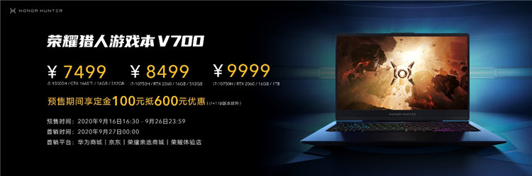 同场发布的还有荣耀猎人游戏本V700,官方售价7499元起。即日起至9月26日,预售期间享定金100元抵600元优惠。荣耀猎人游戏本机身厚度仅19.9mm,依靠升降式风谷散热设计等5大创新散热技术,在超薄的机身内做到了旗舰级的散热表现。硬件配置方面,荣耀猎人游戏本V700处理器至高采用第十代智能英特尔® 酷睿™ i7-10750H 处理器,显卡搭载NVIDIA® GeForce RTX™ 2060 光追独显,让玩家在高画质3A游戏以及创意生产工作中拥有出色的体验。除了游戏本常规的强悍性能,荣耀猎人游戏本还继承了荣耀笔记本独特的多屏协同功能,让玩家享受到智慧全场景的独特体验。荣耀猎人游戏本V700于9月27日零点正式发售。