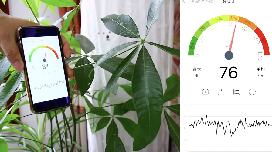 虽然加湿器效果都还不错,但是在使用过程中,使用体验还是有着很大的差距的。尤其是运行噪音方面。当我们开启戴森加湿器最大风量后,噪音平均为70分贝左右,开启巴慕达加湿器最大风量后,噪音平均为46分贝,相对来所,戴森加湿器显得有一些吵。