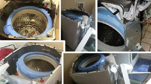 洗衣机在脱水的时候,电机会带动内桶高速旋转,此时内桶就会产生巨大的离心力,如果在内桶中放入金属或者石块,就会引发巨大的震动,造成洗衣机的破坏...