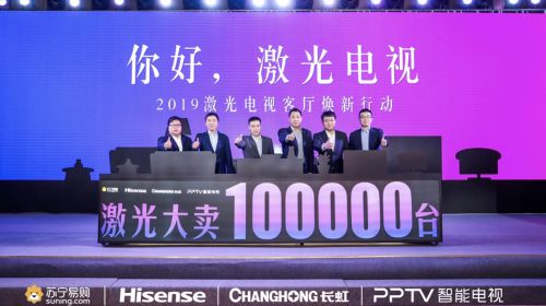 2月21日,长虹、海信、PPTV三大激光电视品牌携手苏宁启动“2019激光电视客厅焕新行动”,宣布达成战略合作并现场签订2019年全年苏宁渠道10万台的销...