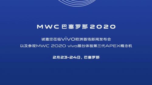 1月14日消息,vivo宣布将于MWC巴塞罗那2020上举行新品发布会(2月23日-2月24日),正式推出vivo第三代APEX概念机。 海报显示,本次发布会的主题...